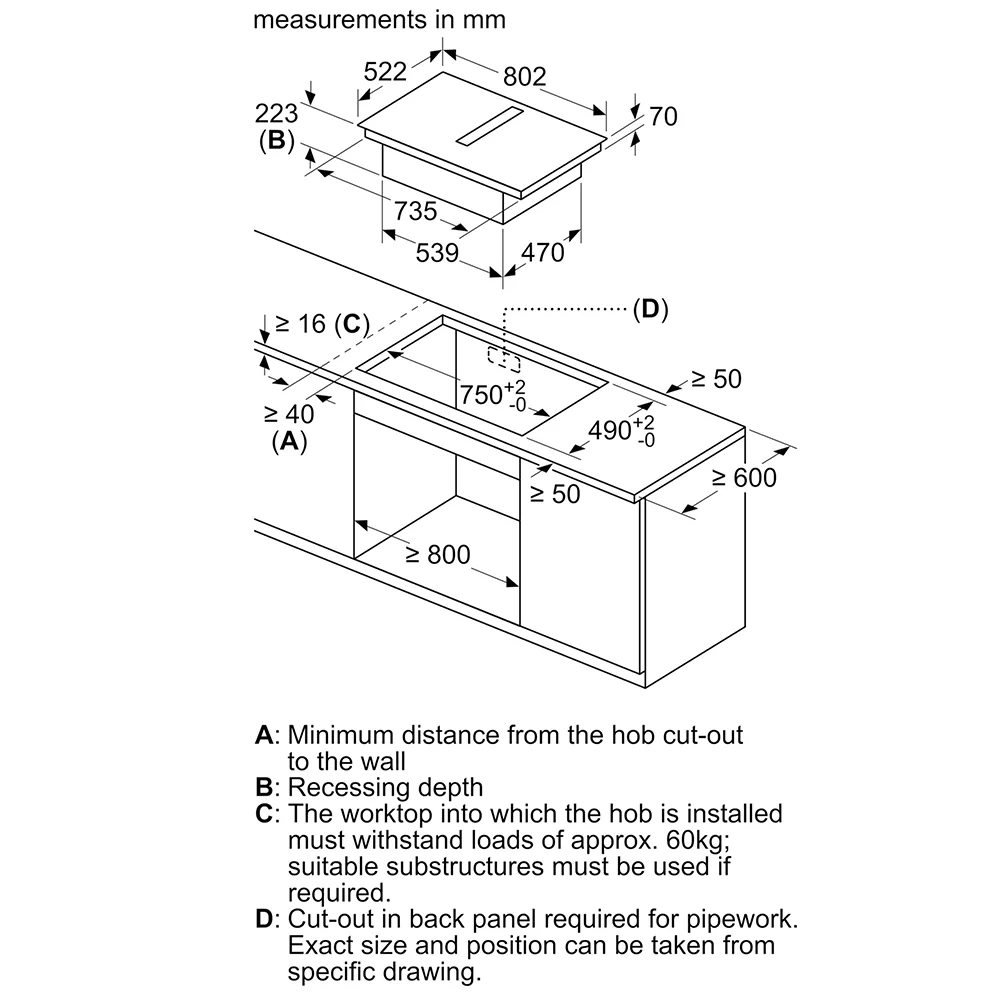 80cm venting induction hob – combines powerful cooking with integrated ventilation